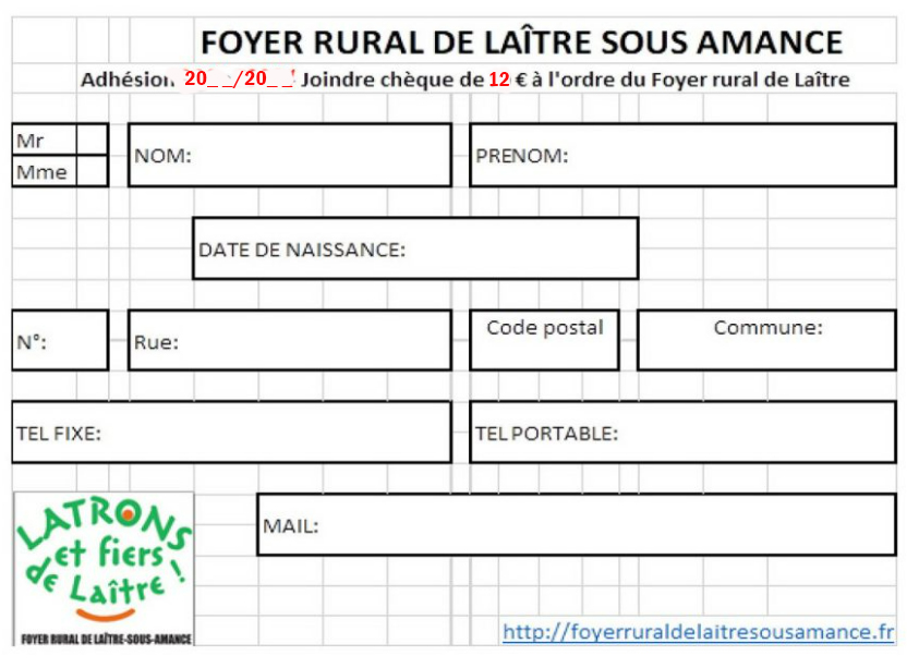 L’adhésion est nécessaire pour pratiquer une ou plusieurs activités régulières au sein du Foyer Rural (ex : Petits Mitrons, couture …etc…).